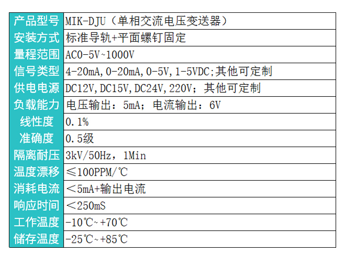 您的位置: 首頁 > 電壓變送器 → 米科MIK-DJU交流電壓變送器