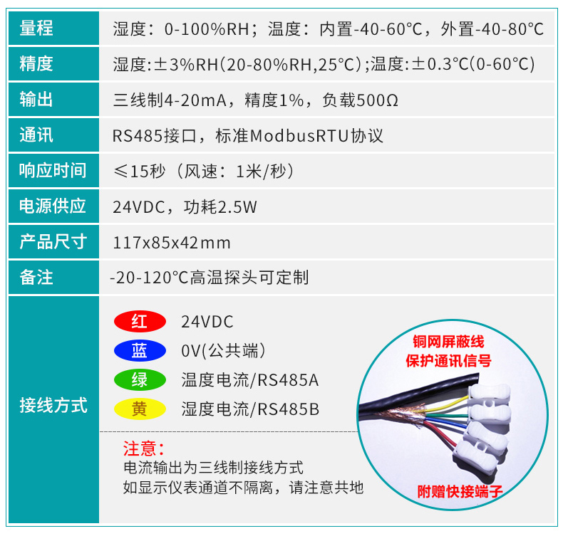 簡介:適用場合:本產(chǎn)品為工業(yè)溫濕度變送器,可選內(nèi)置探頭和外置探頭,監(jiān)測環(huán)境空氣溫度和濕度參數(shù),變送為電流、電壓輸出或使用 RS485 通訊接口數(shù)字輸出,可配實(shí)時數(shù)碼顯示。