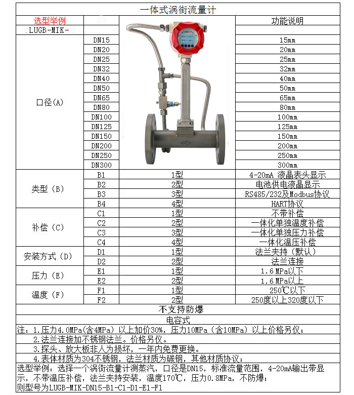 米科LUGB-MIK渦街流量計 空氣、氣體、液體、蒸汽、導熱油 升級款