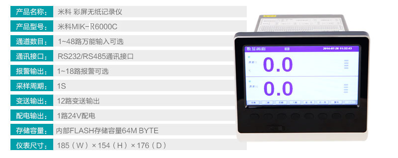 您的位置: 首頁 > 無紙記錄儀 → 米科MIK-R6000C 1~48路彩色無紙記錄儀